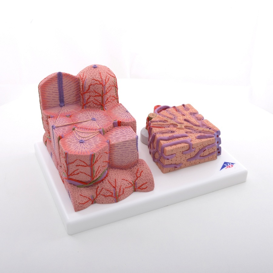 This microanatomy liver model is supplied with a base for easy display in a classroom or clinical setting.
