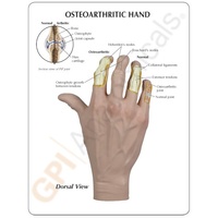 This full-size right hand osteoarthritis (OA) model shows the effects of osteoarthritis through cutaway views and painted detailing.