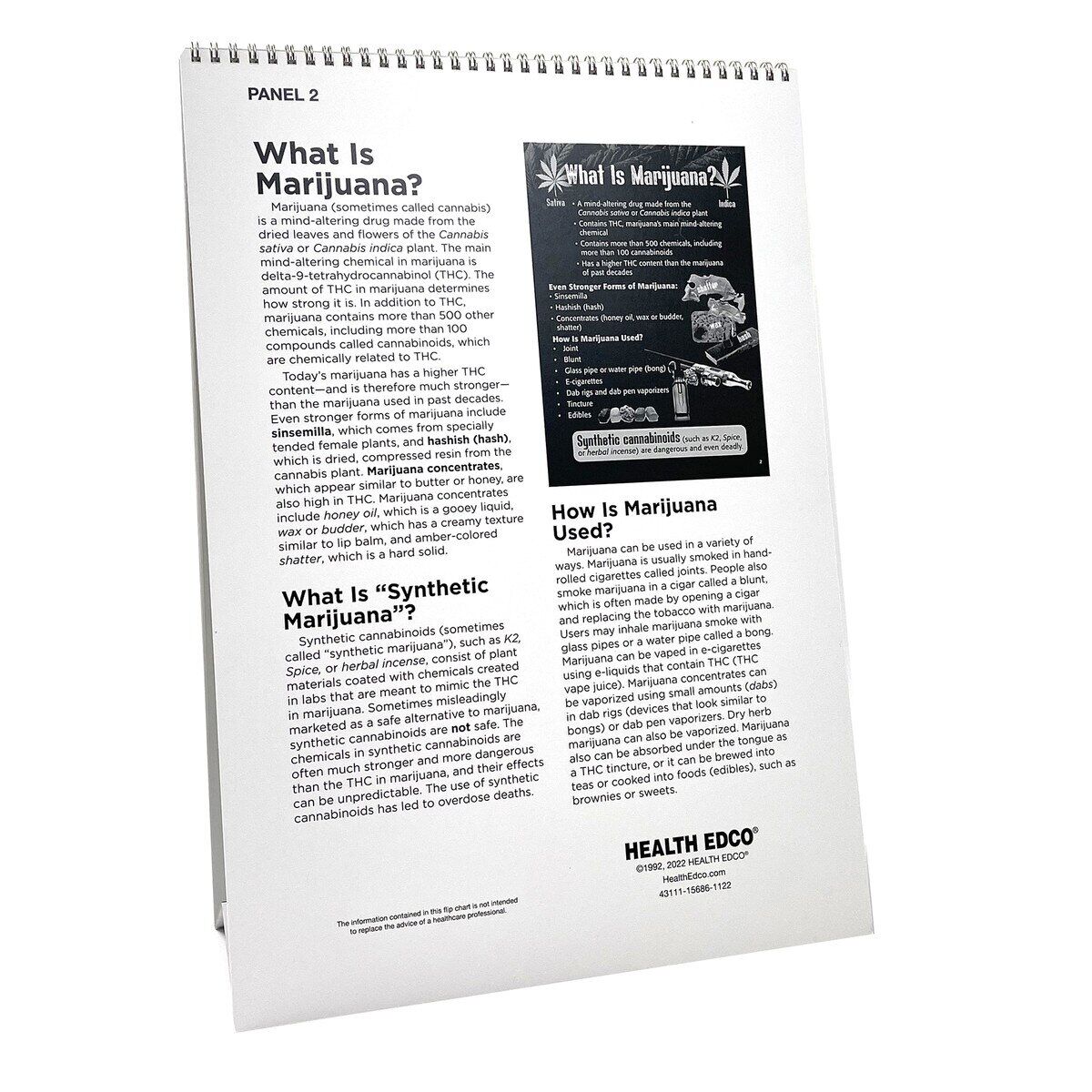 Emphasizing that marijuana use can lead to addiction, physical harms, and other negative consequences, this attention-grabbing, 6-panel flip chart (12" x 17") is an ideal resource to teach the facts about marijuana. Covering different types of marijuana (including stronger forms such as concentrates), “synthetic marijuana,” emerging dangers of vaping marijuana, and potential physical and social ramifications associated with using the drug, this educational flip makes it clear that using marijuana comes with multiple risks. Features presentation notes on reverse panels.
