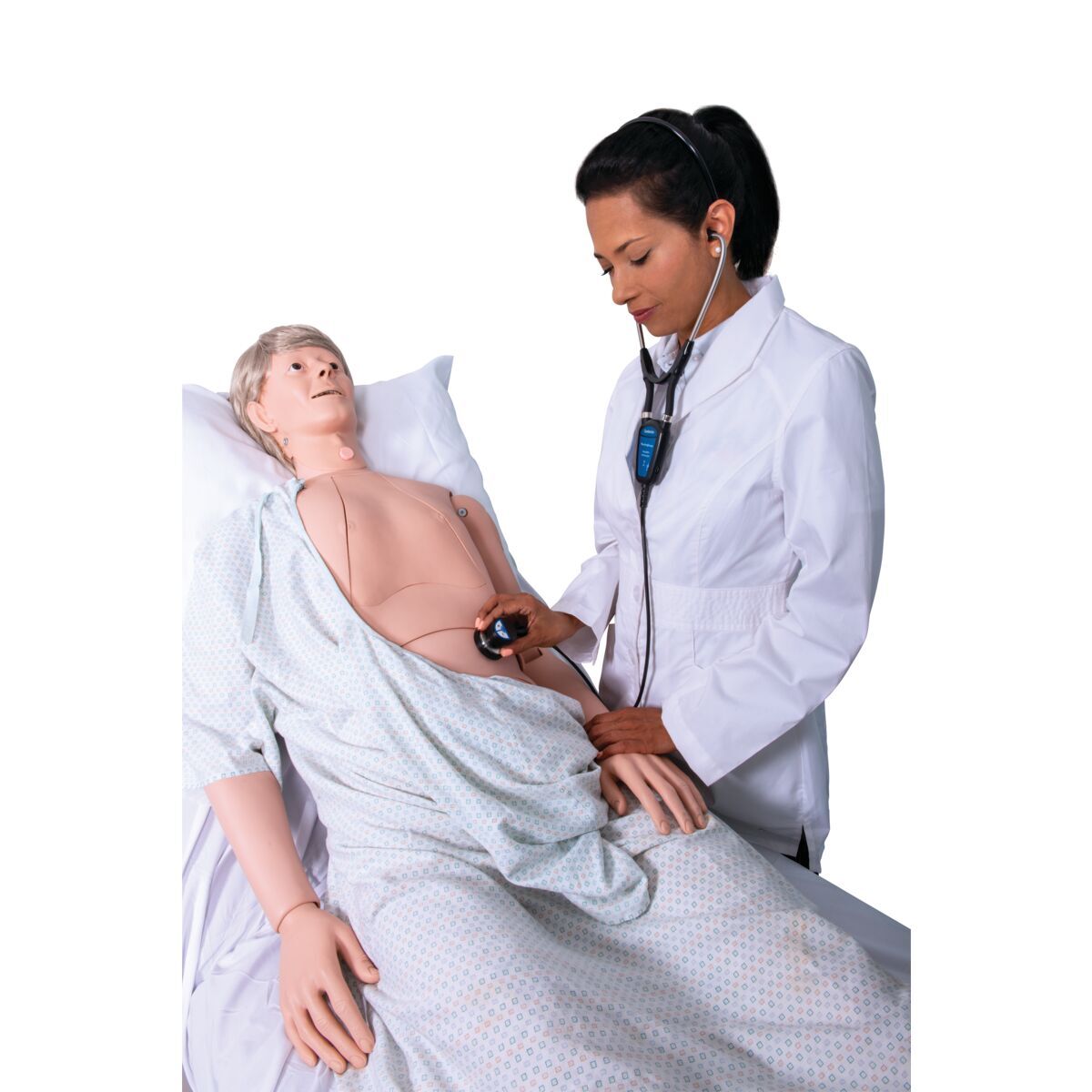 Nikki the Nursing Manikin simulates an adult, life-size patient and comes with the NursingScope Auscultation Training Stethoscope powered by Cardionics.
