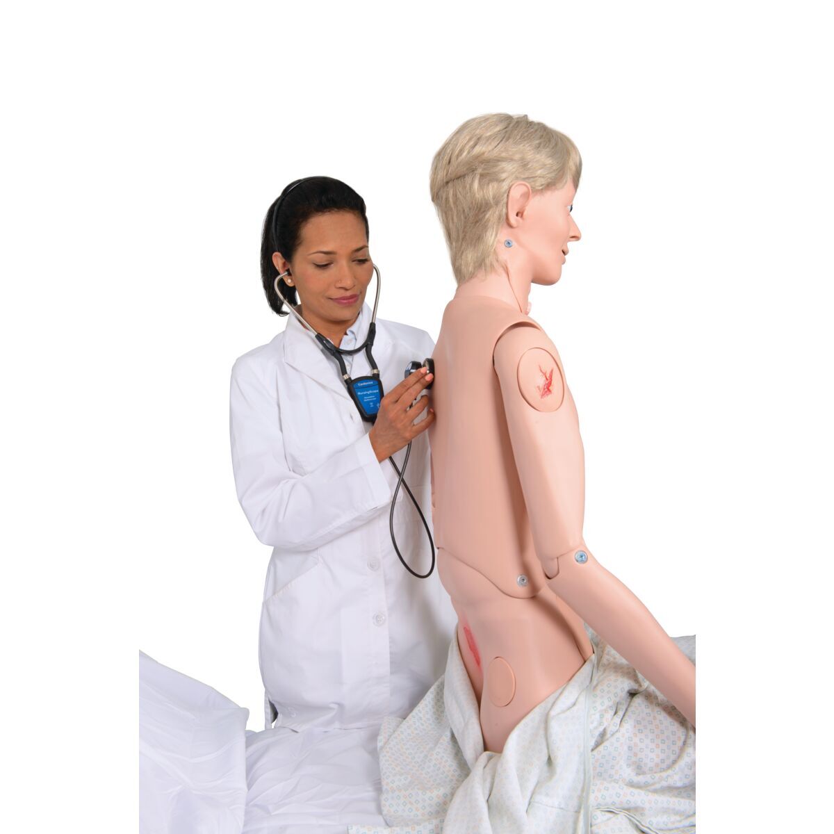 Nikki the Nursing Manikin with Auscultation offers 11 anterior and 4 posterior auscultation sites with 42 high quality sounds powered by Cardionics – the Leader in Auscultation Simulation. The manikin was developed specifically for scenario-based simulation to improve competency in patient care and advanced nursing skills.