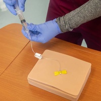 VATA’s Port “Body in a Box” is a low cost, compact, lightweight, quick to set up and store port access training model for the teaching and practice of palpating and accessing IVADs (Implanted Vascular Access Devices).